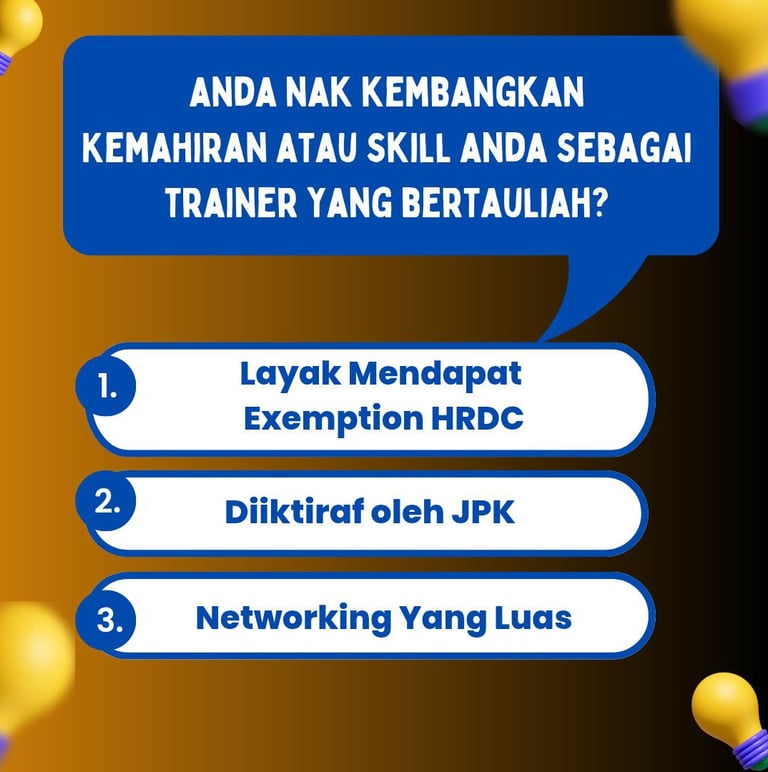 Nak upgrade jadi seorang TRAINER BERTAULIAH yang diiktiraf Kerajaan?